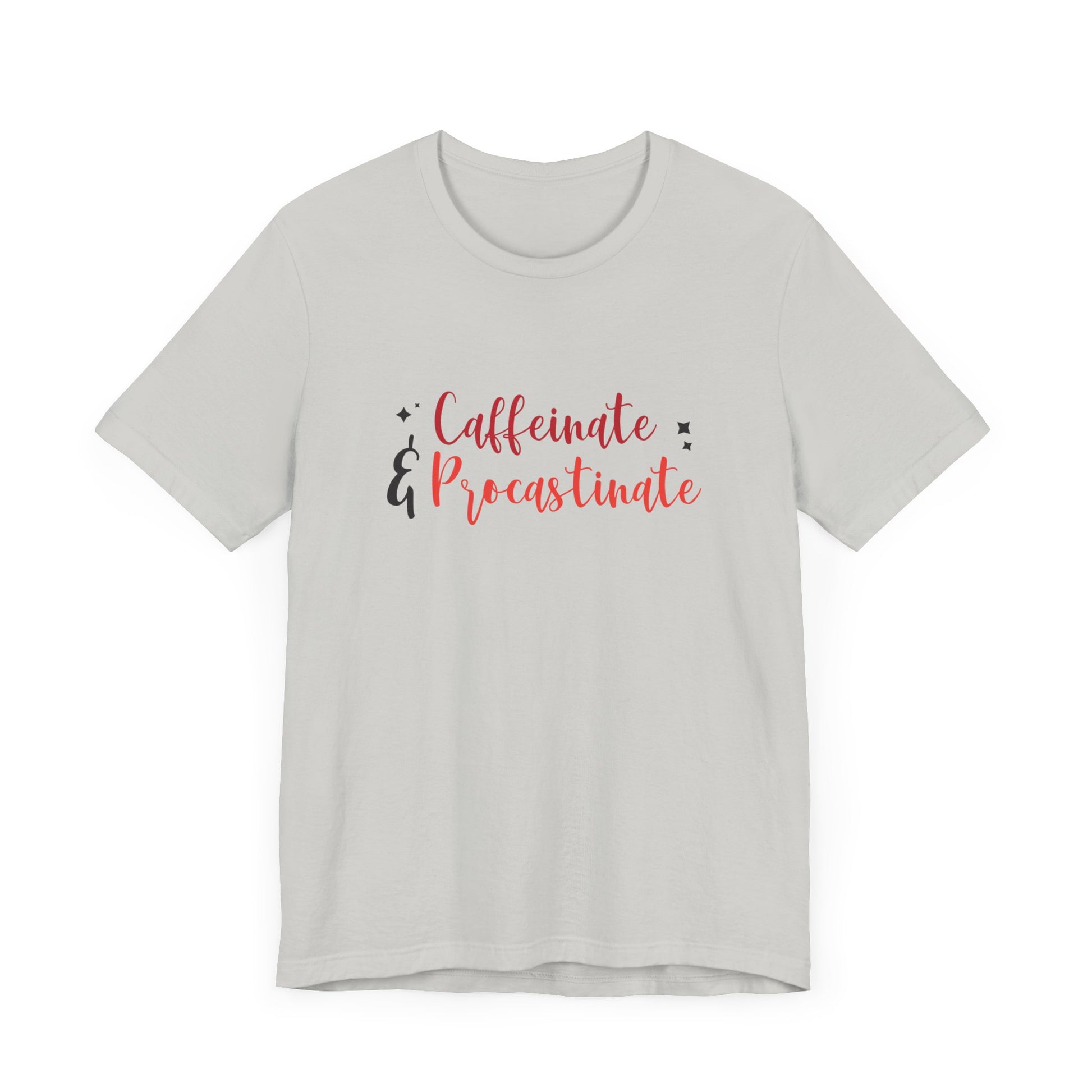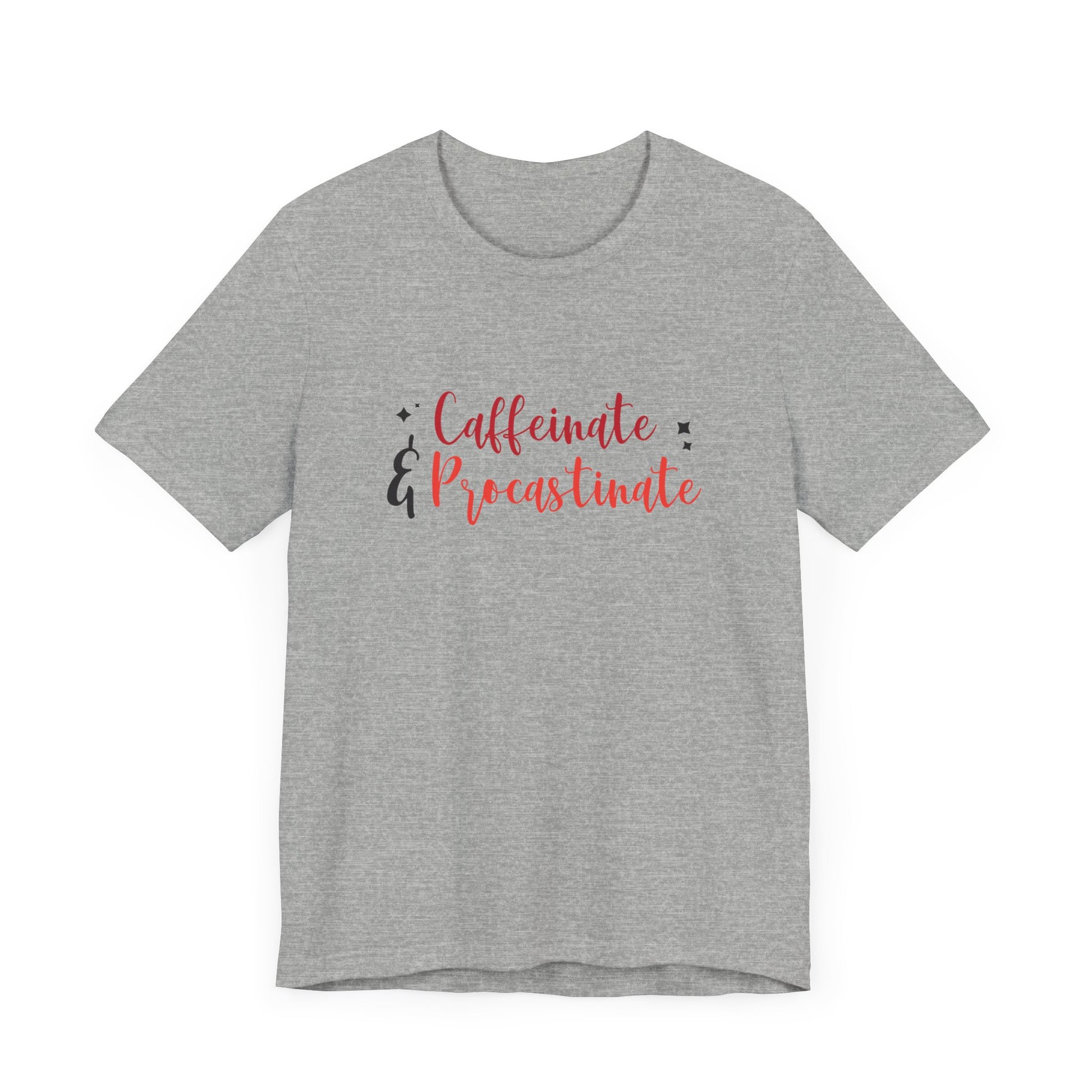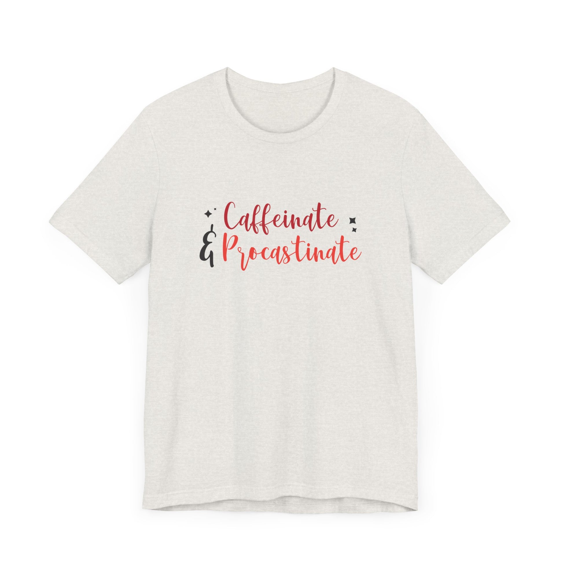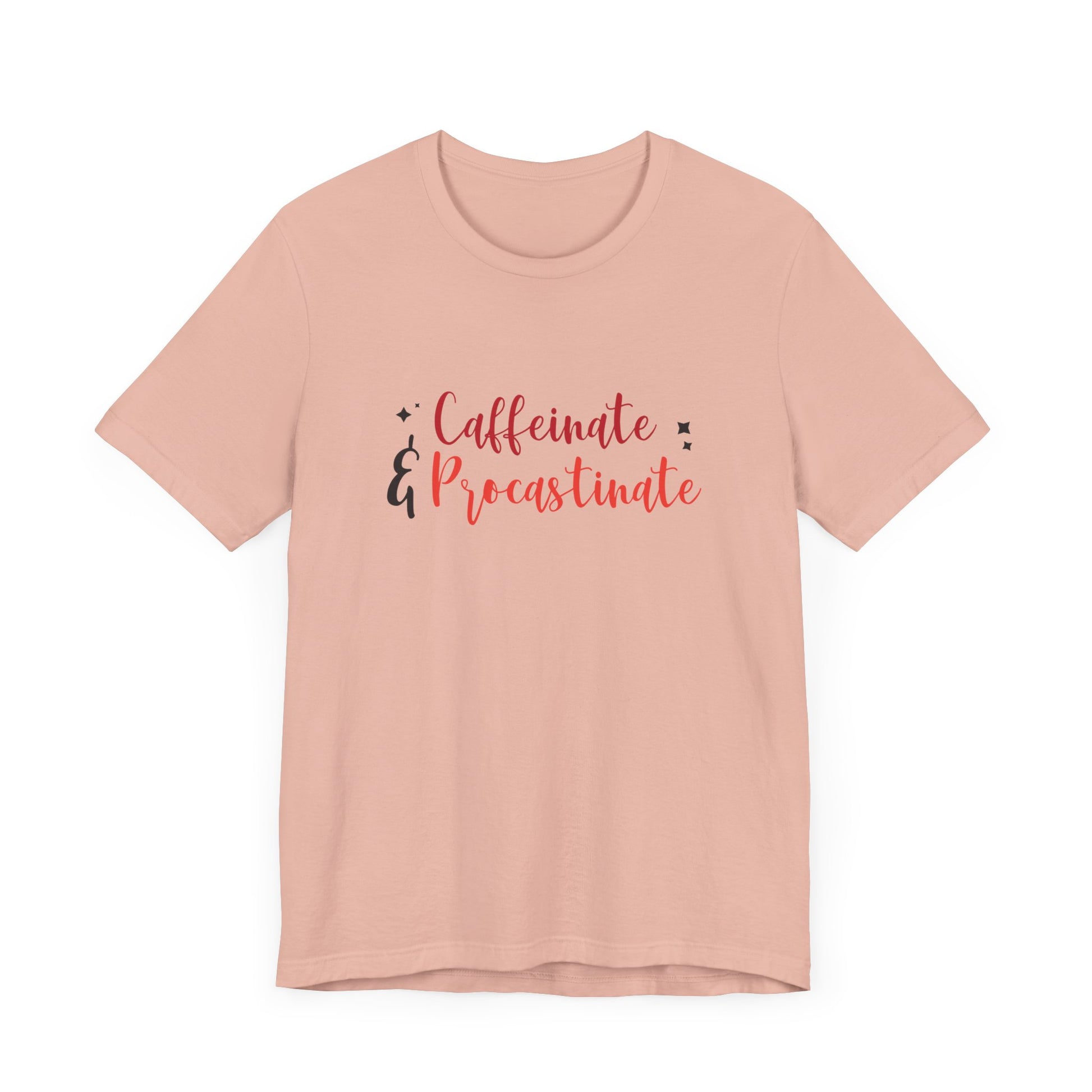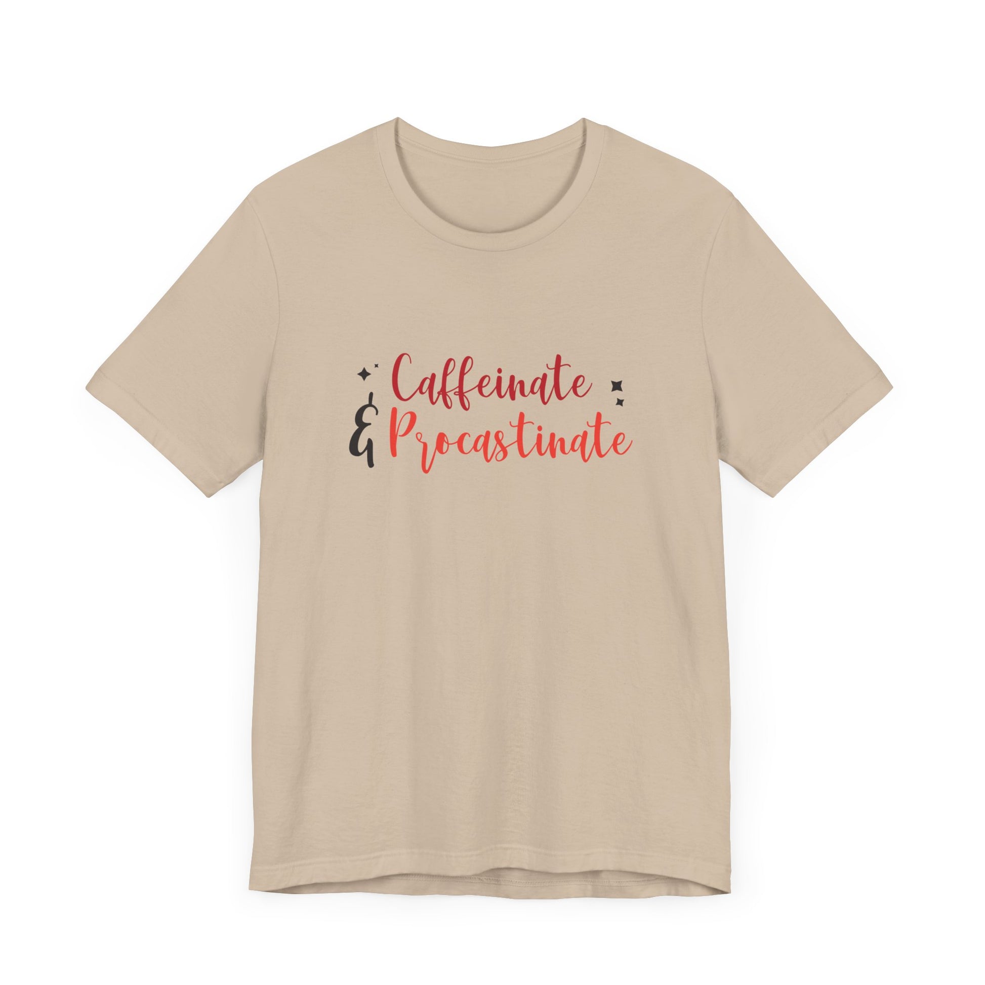 Caffeinate and Procrastinate T-Shirt – Funny Unisex Graphic Tee for Coffee-Loving Overthinkers