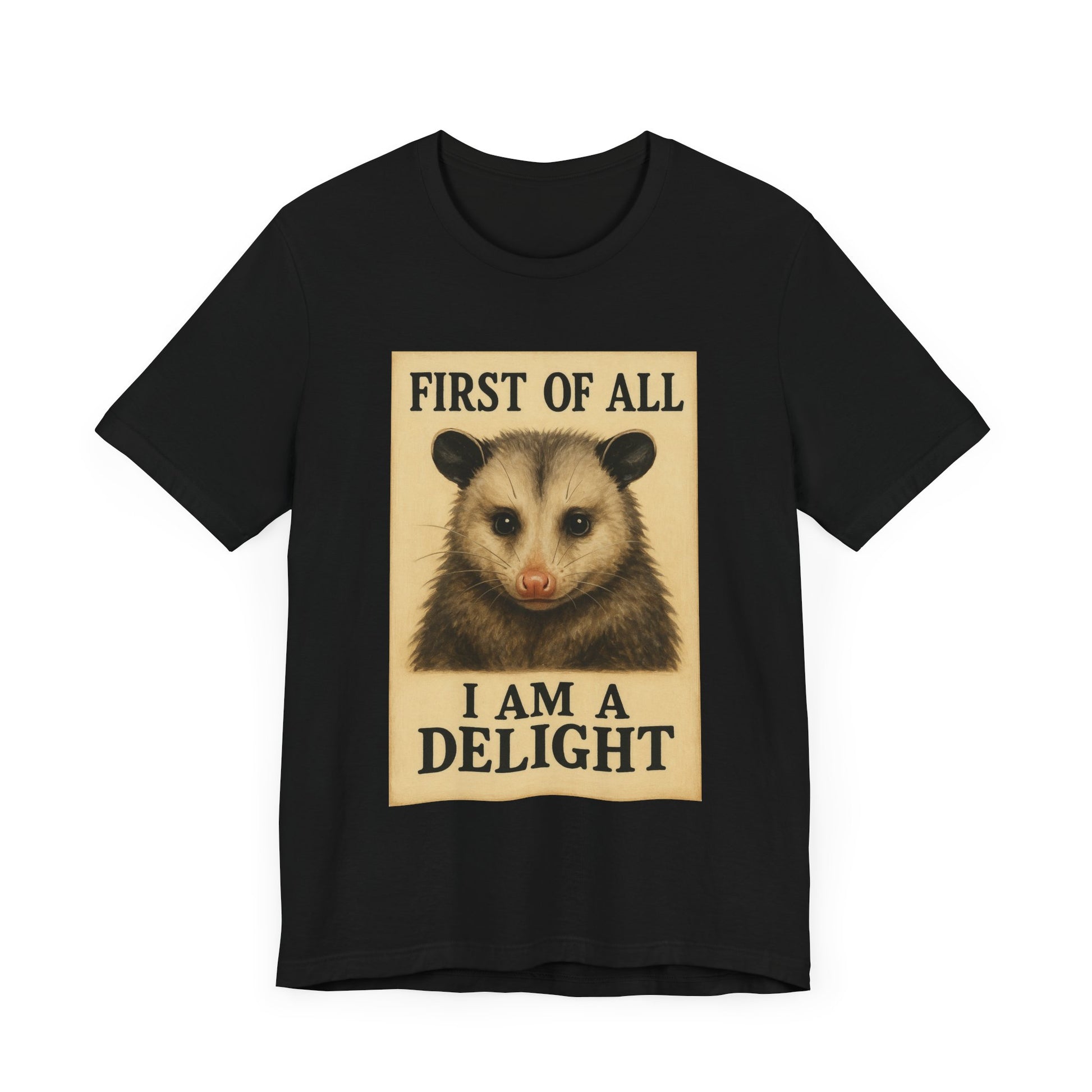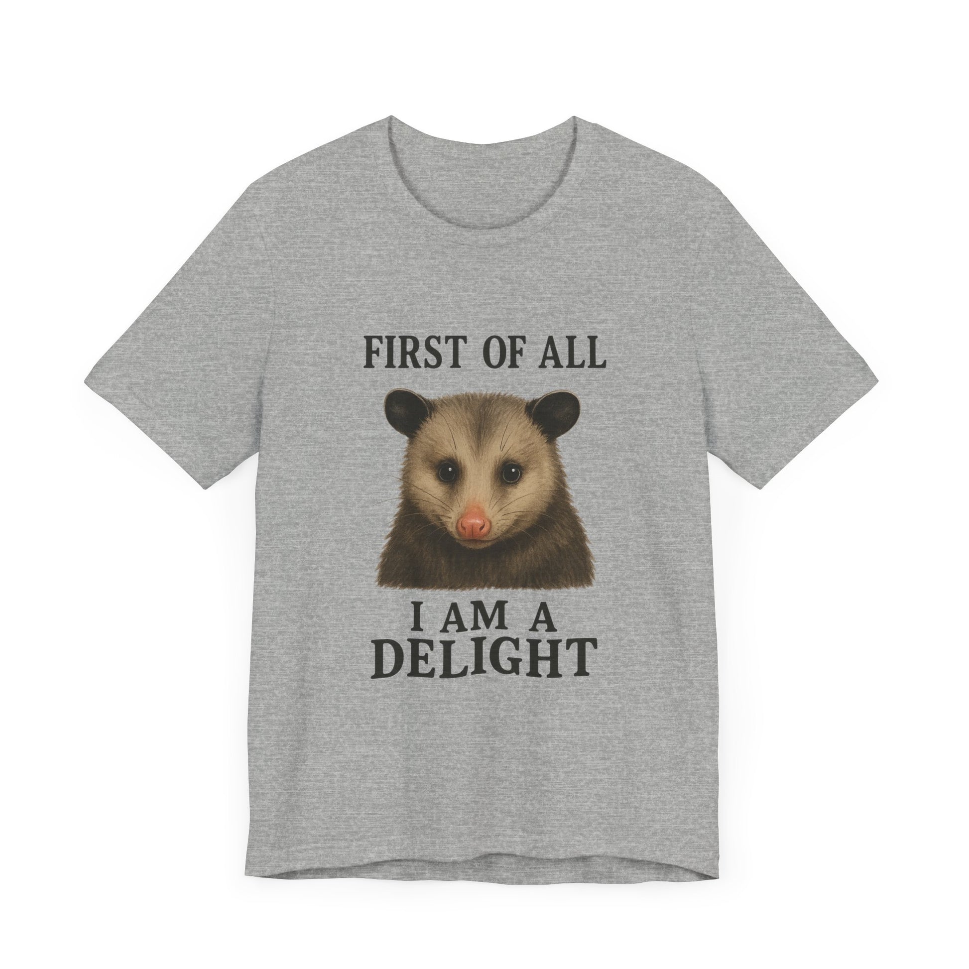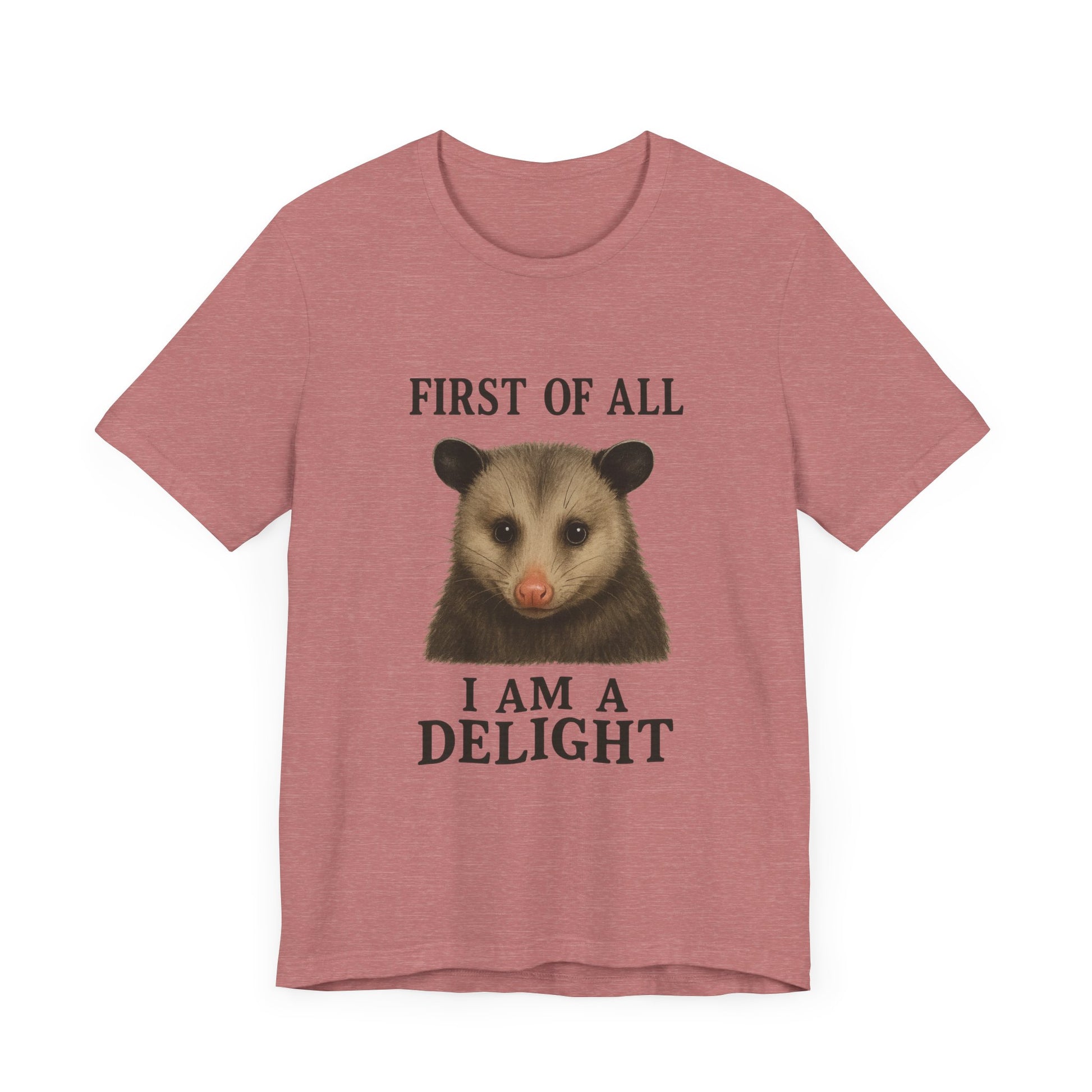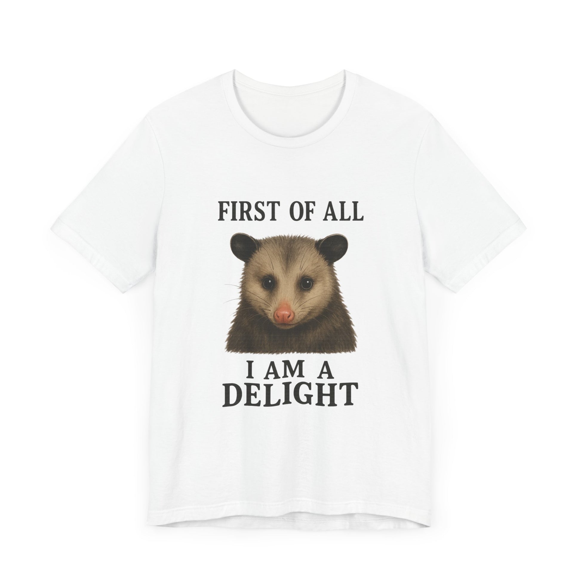 First of All, I’m a Delight T-Shirt – Funny Sarcastic Opossum Shirt for Feral Moms and Self-Love Queens