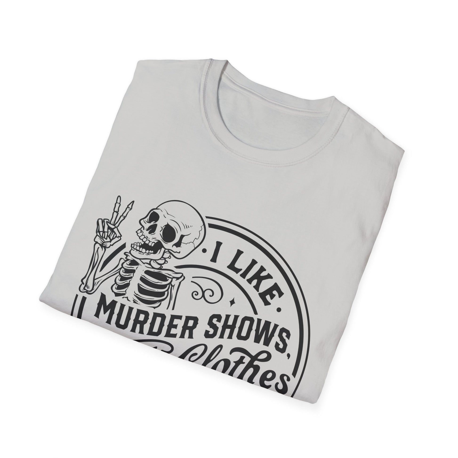 I Like Murder Shows and Comfy Clothes T-Shirt – Funny Graphic Tee for True Crime Junkies and Professional Loungers