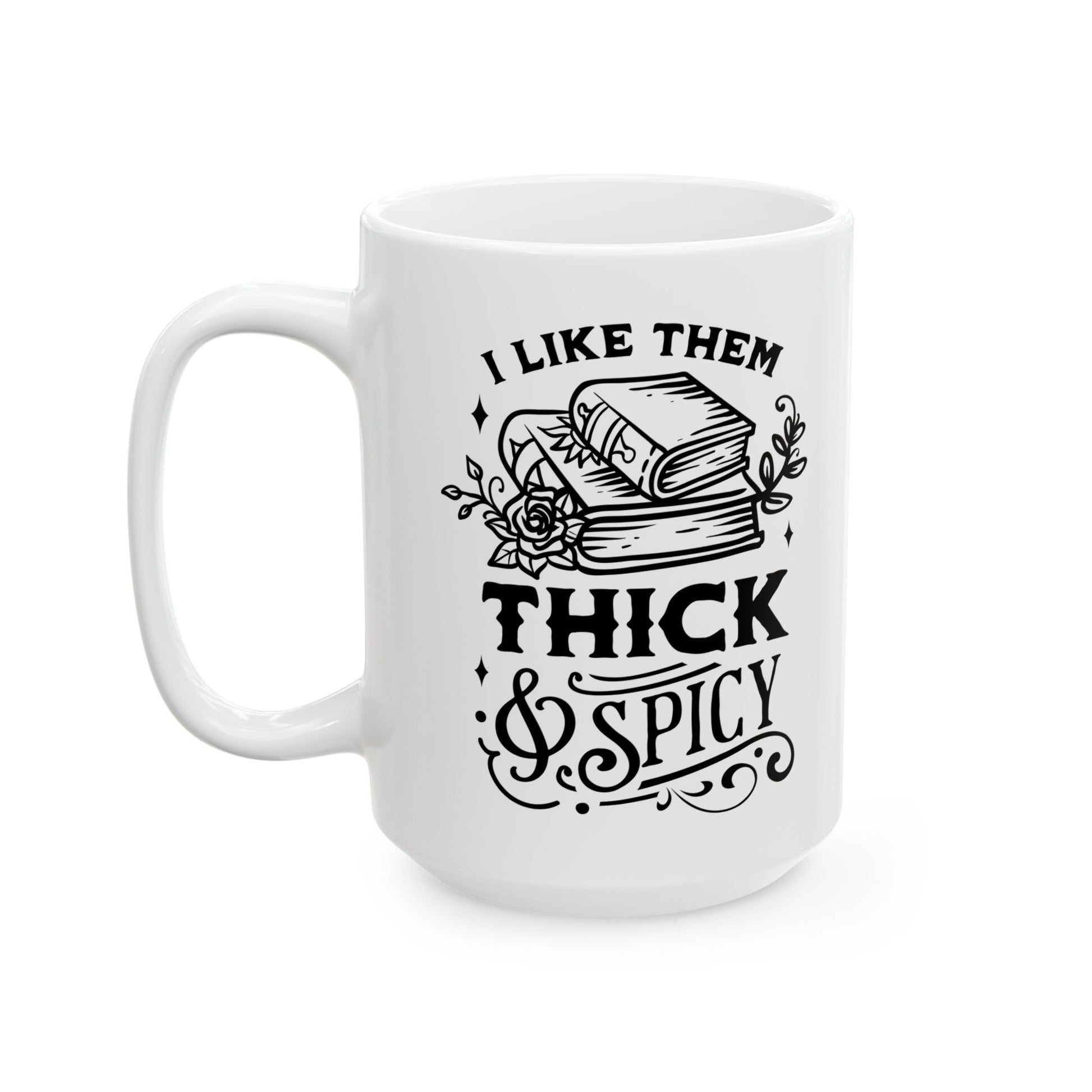 I Like Them Thick and Spicy Mug – Funny Coffee Cup for Book Nerds and Lit Lovers (11oz & 15oz)
