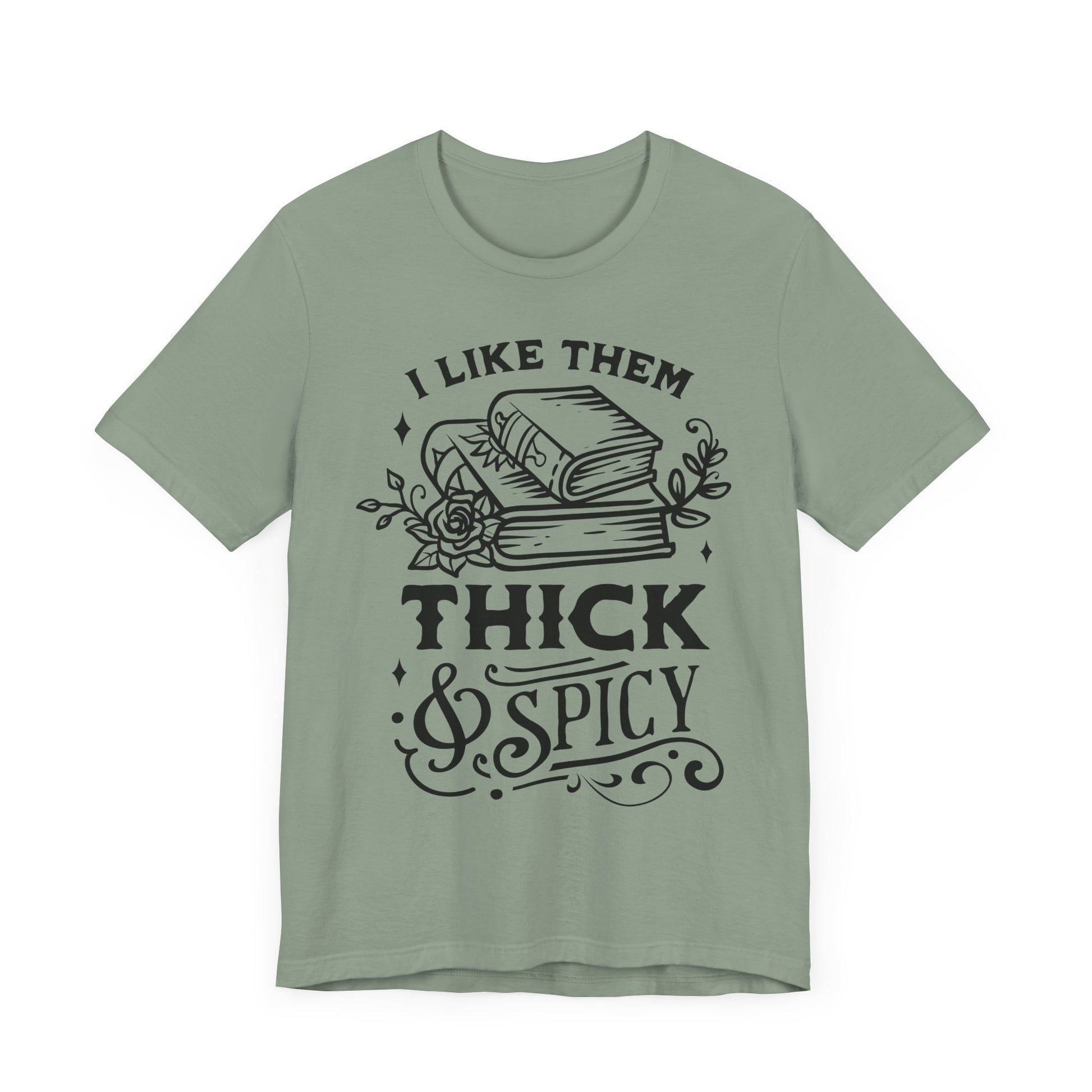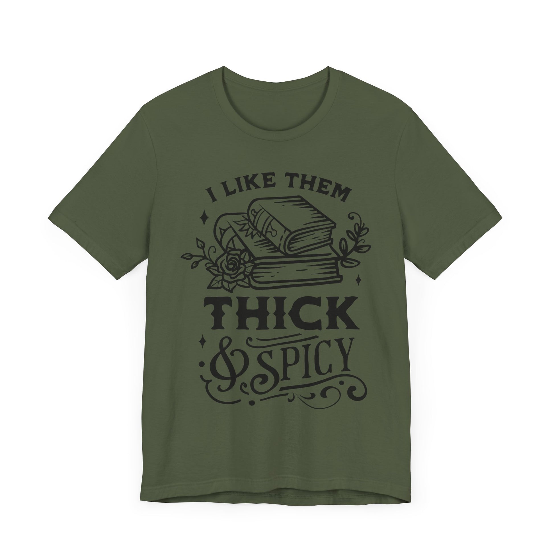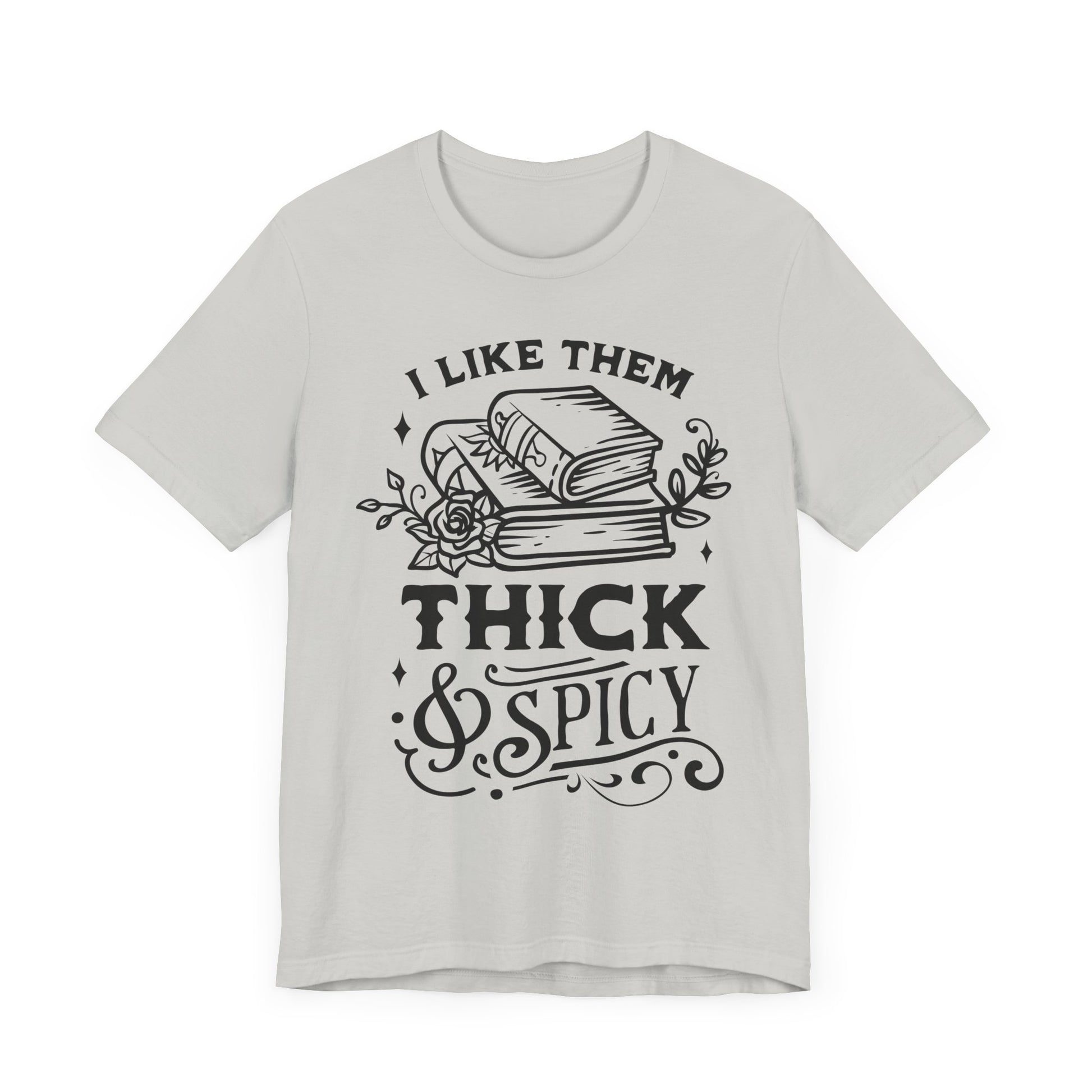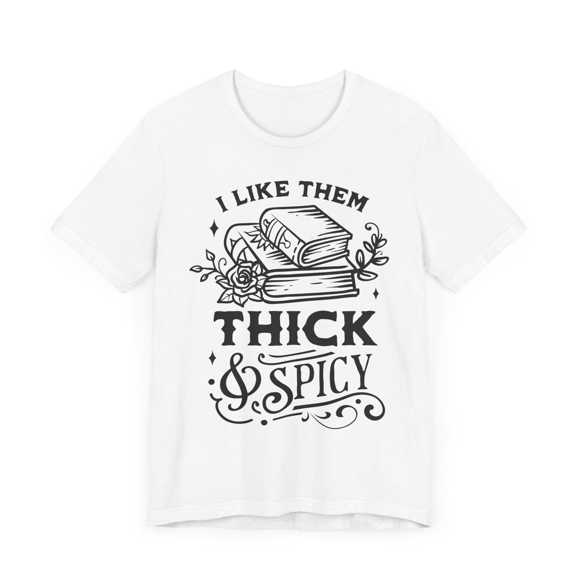 I Like Them Thick and Spicy T-Shirt – Funny Graphic Tee for Book Lovers and Readers