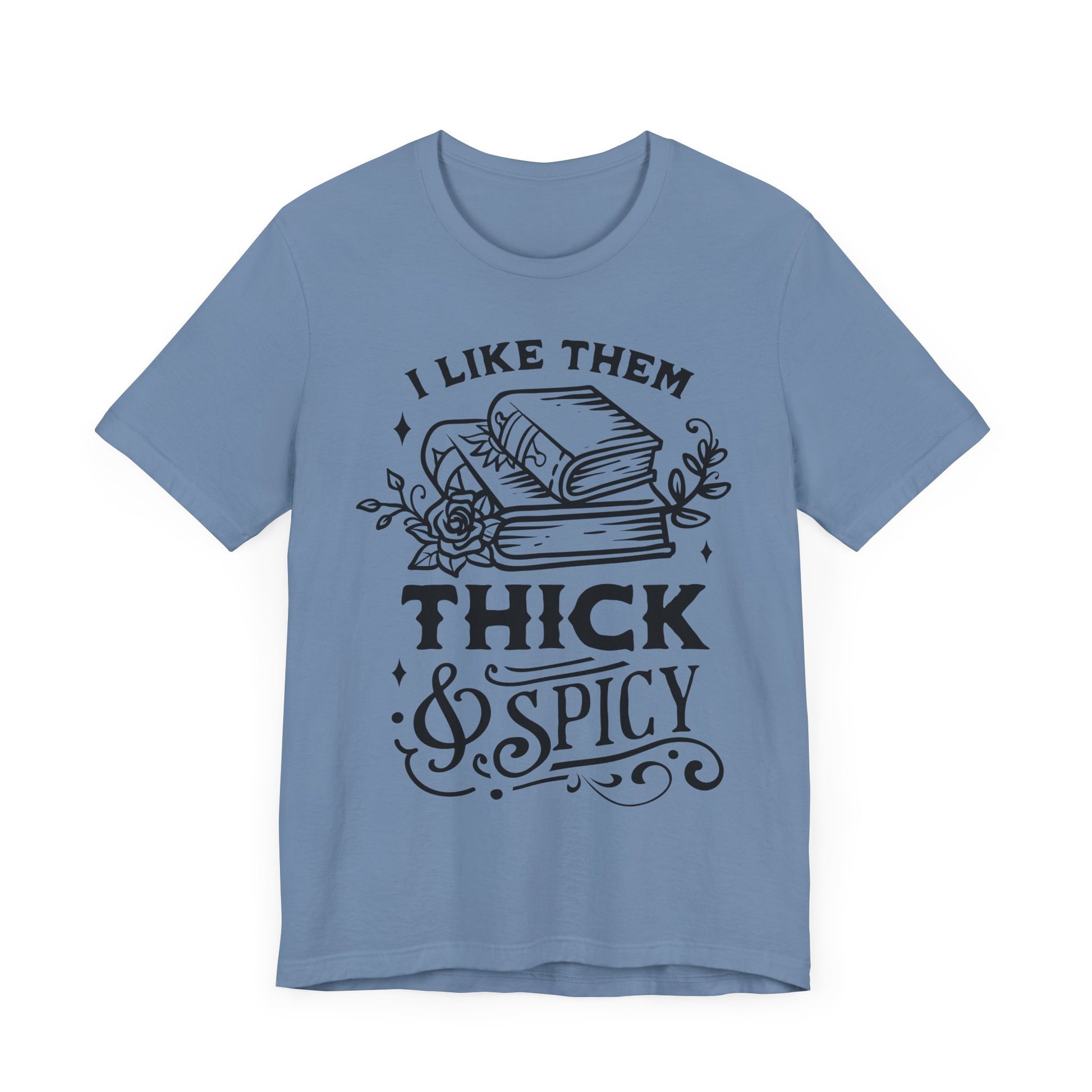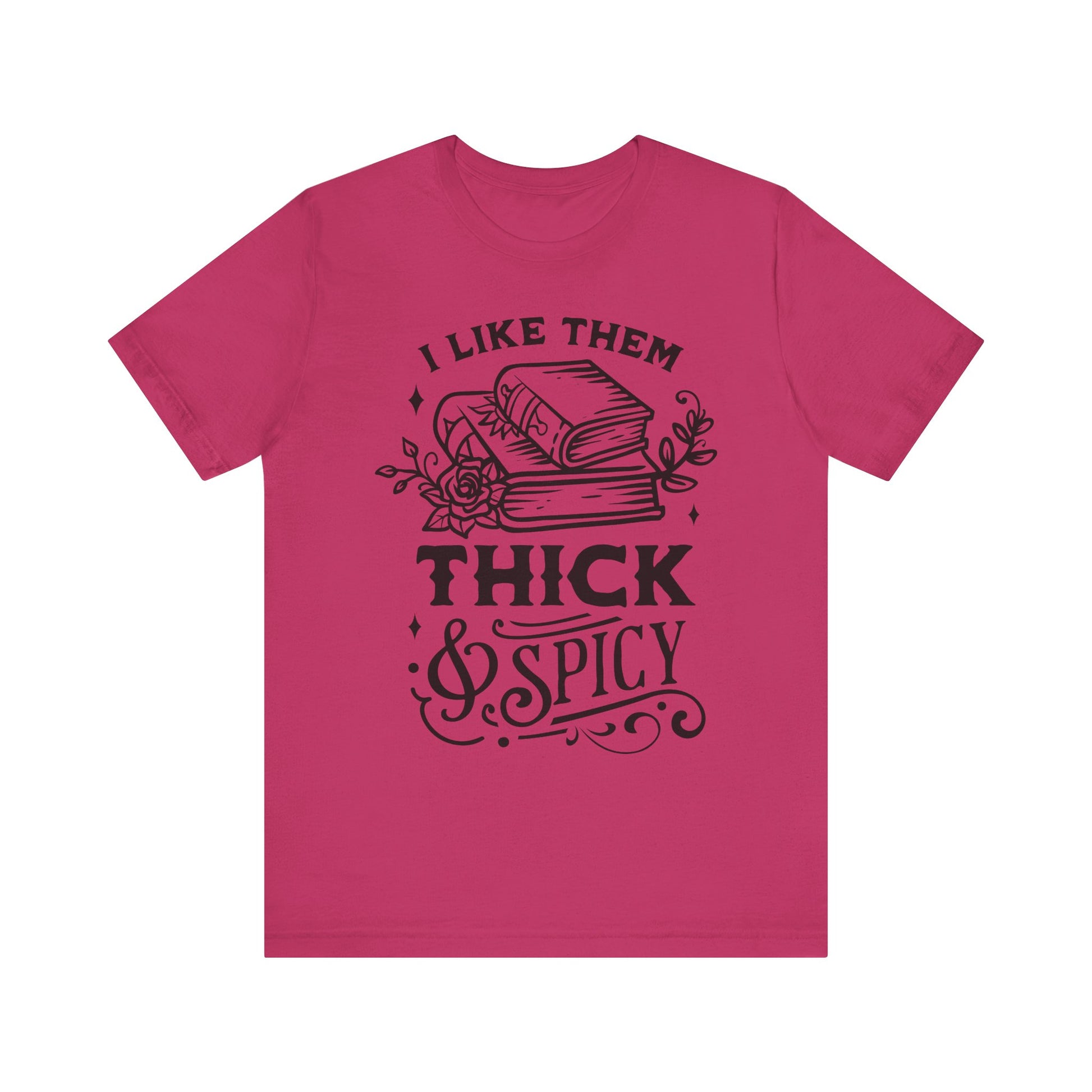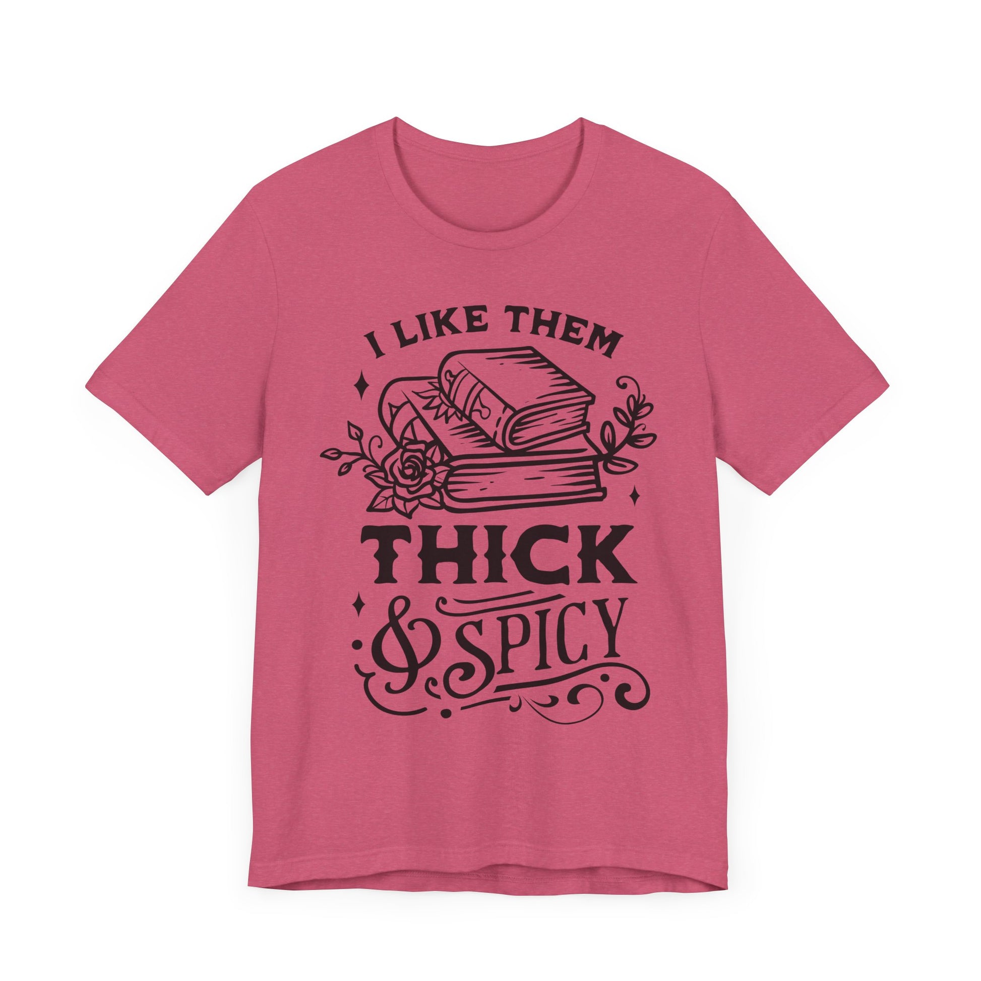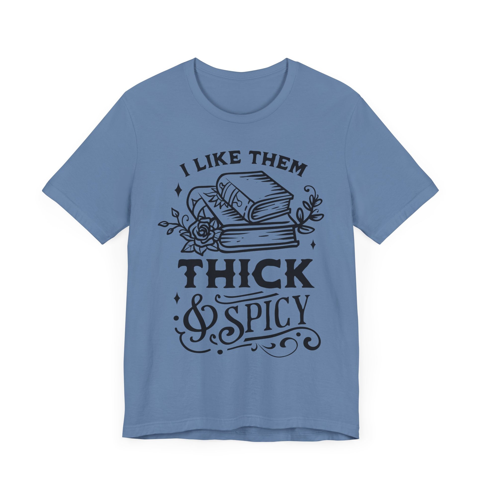 I Like Them Thick and Spicy T-Shirt – Funny Graphic Tee for Book Lovers and Readers