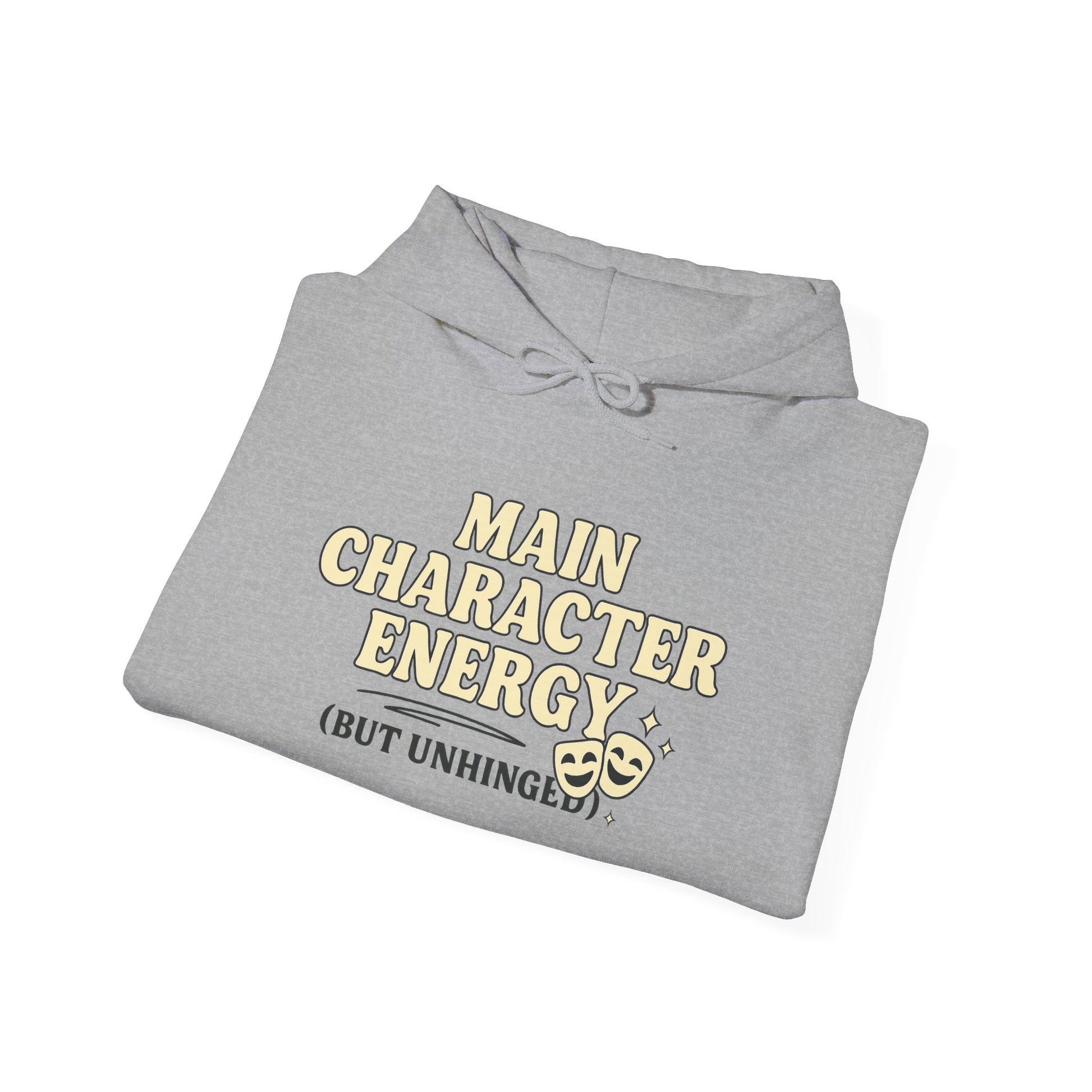 Main Character Energy (But Unhinged) Hoodie – Funny Bold Sweatshirt for Spiraling Drama Queens