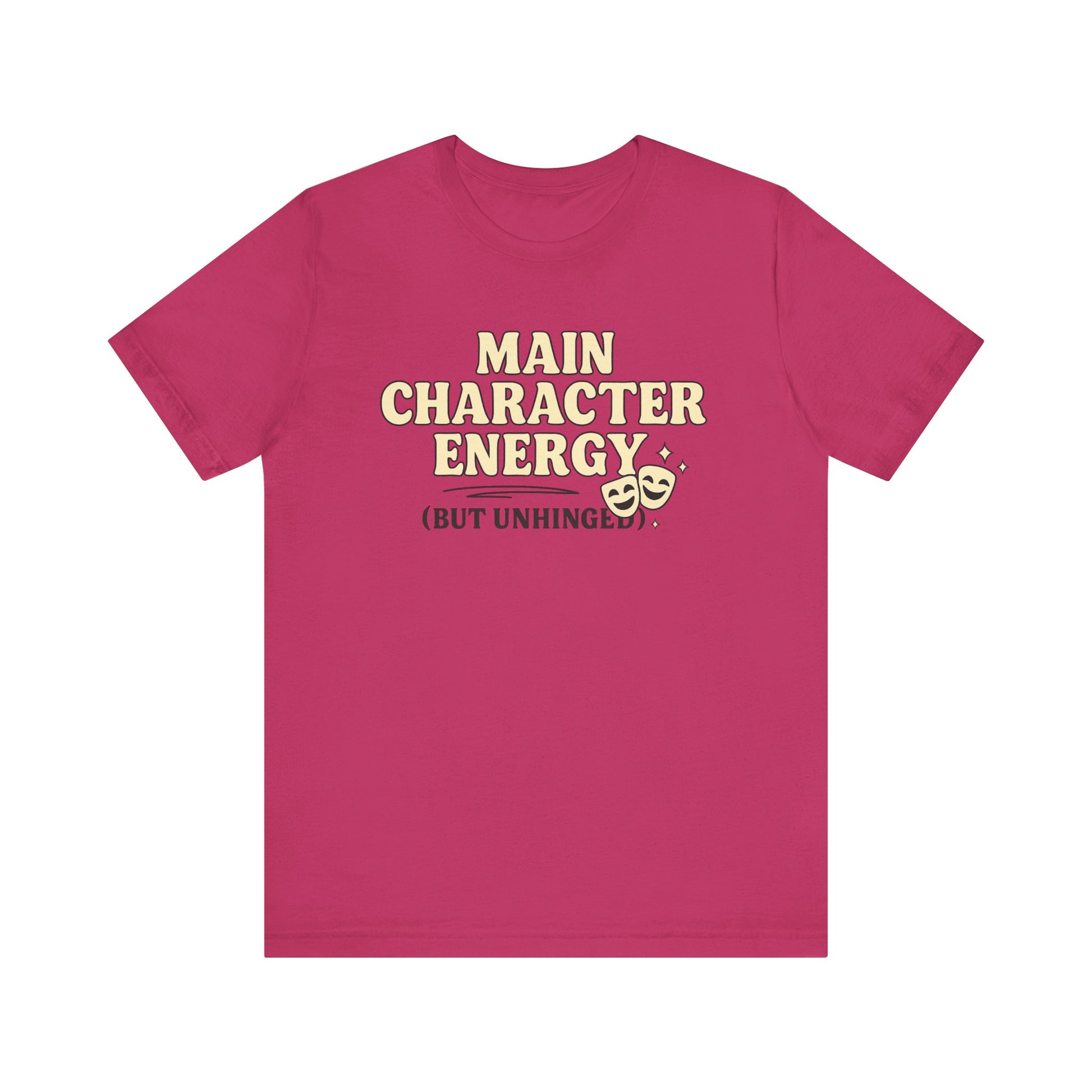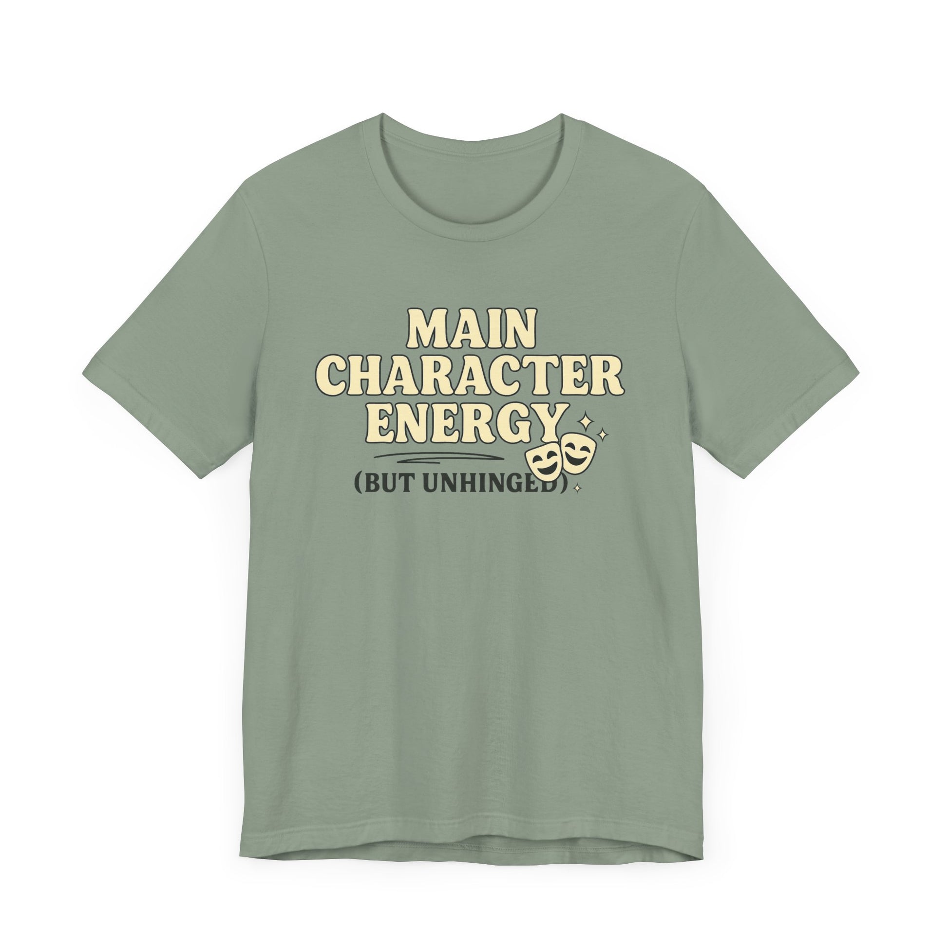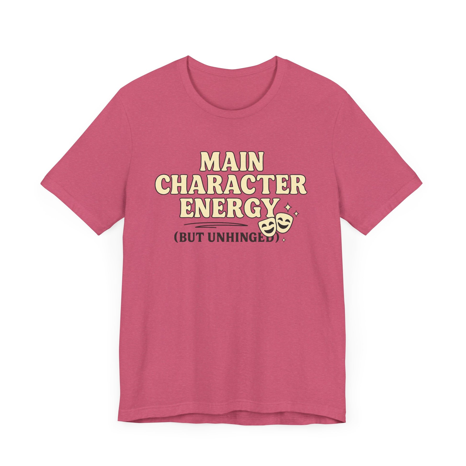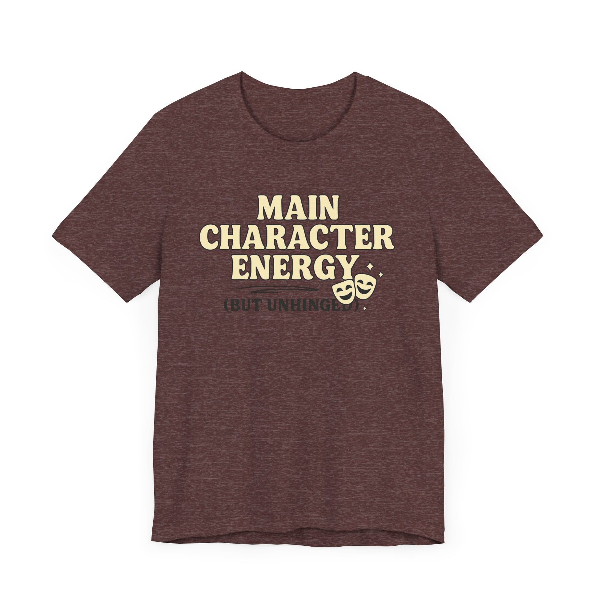 Main Character Energy (But Unhinged) T-Shirt – Funny Graphic Tee for Theater Kids, Drama Queens & Chaos Curators