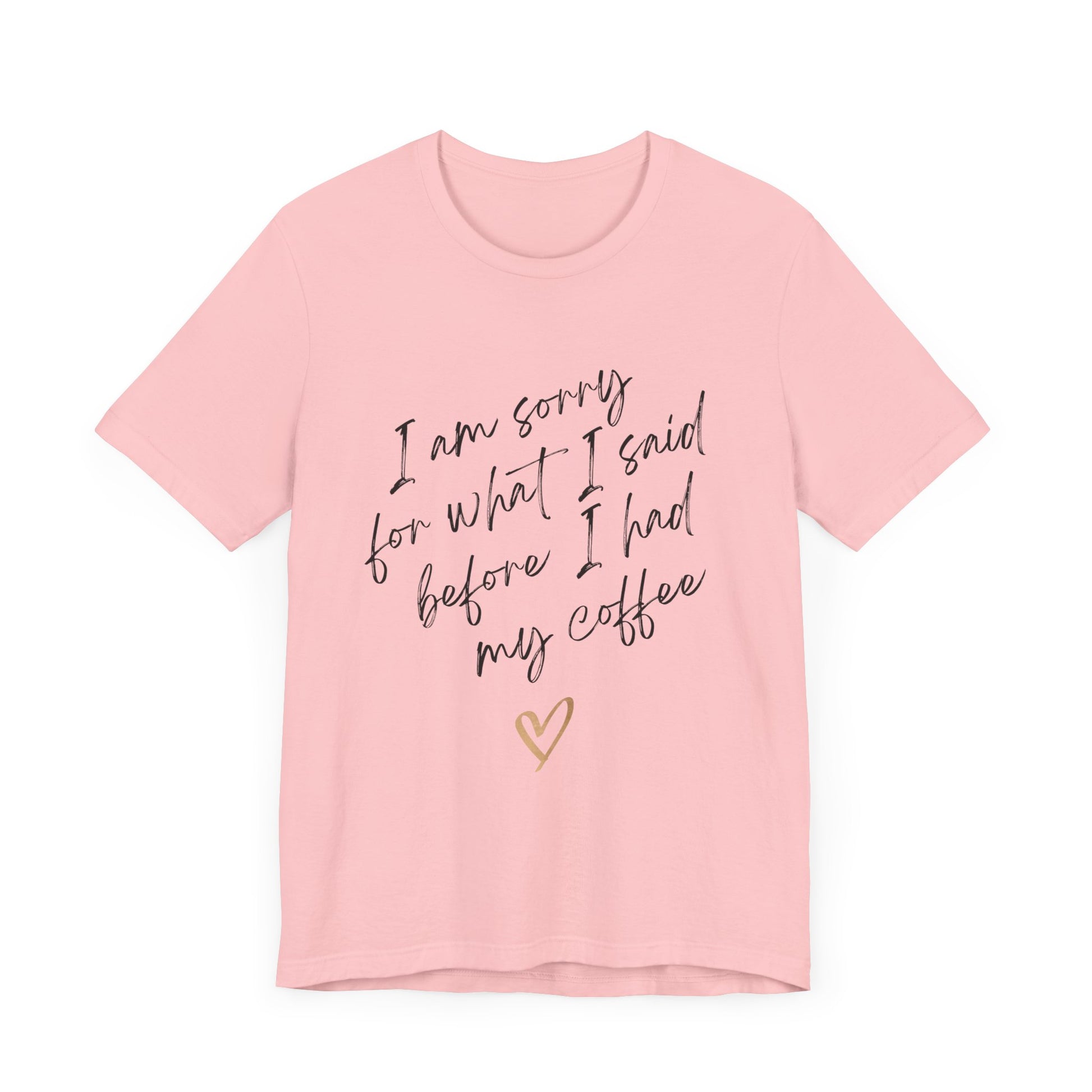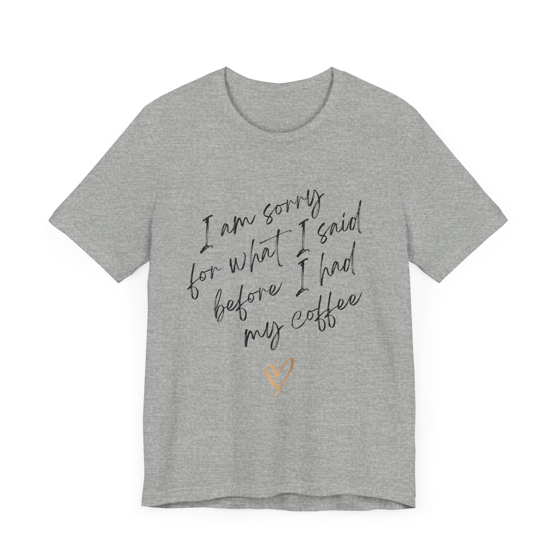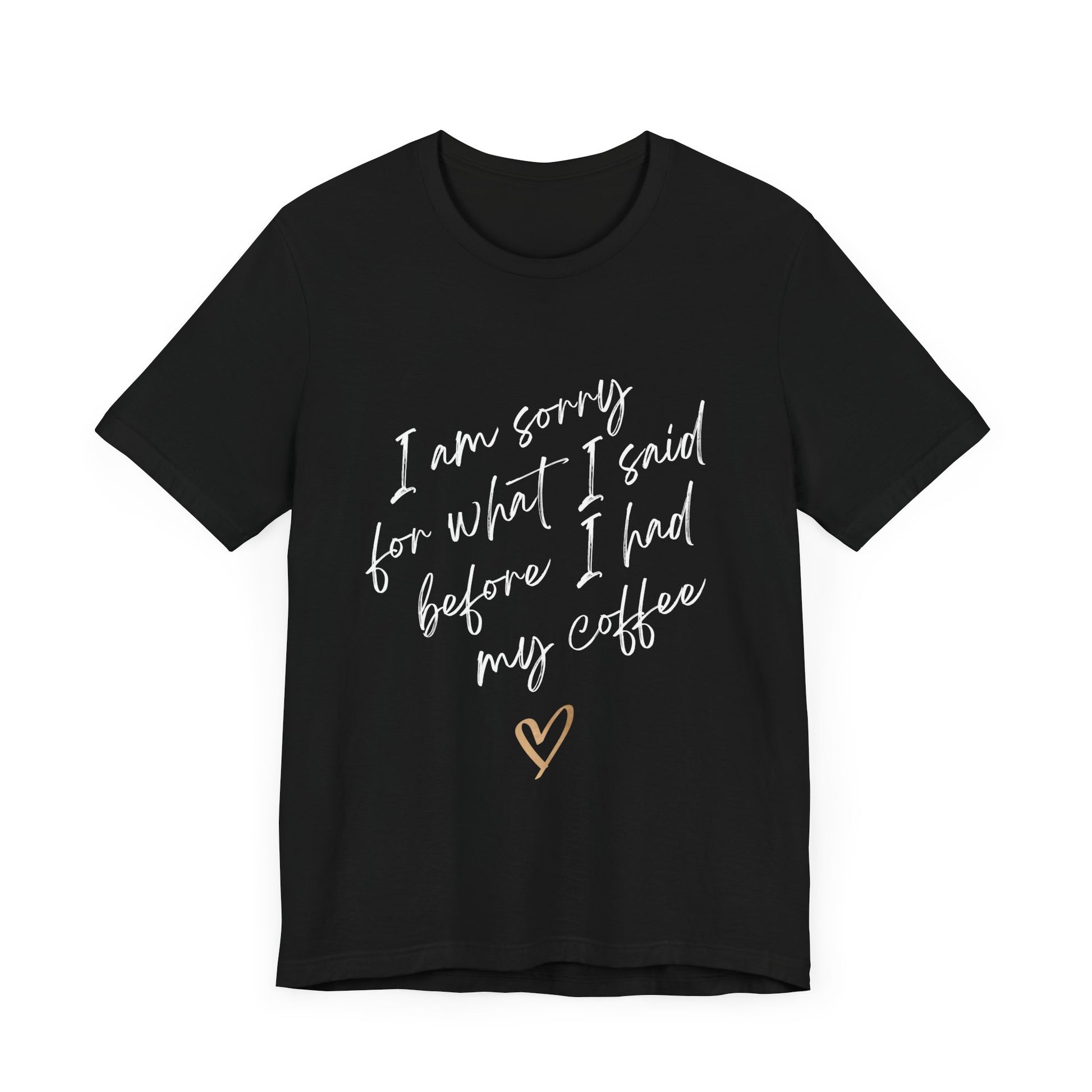 Sorry for What I Said Before Coffee T-Shirt – Funny Unisex Graphic Tee for Coffee Lovers