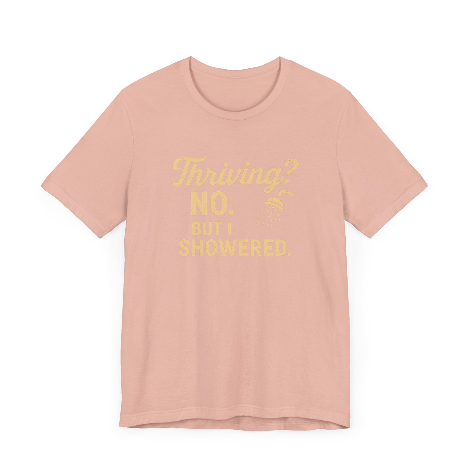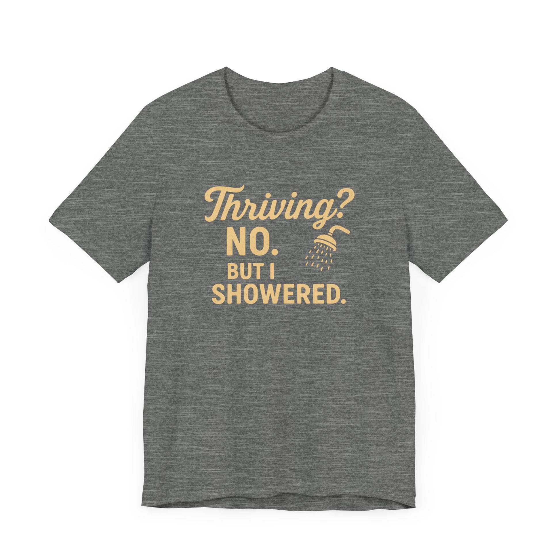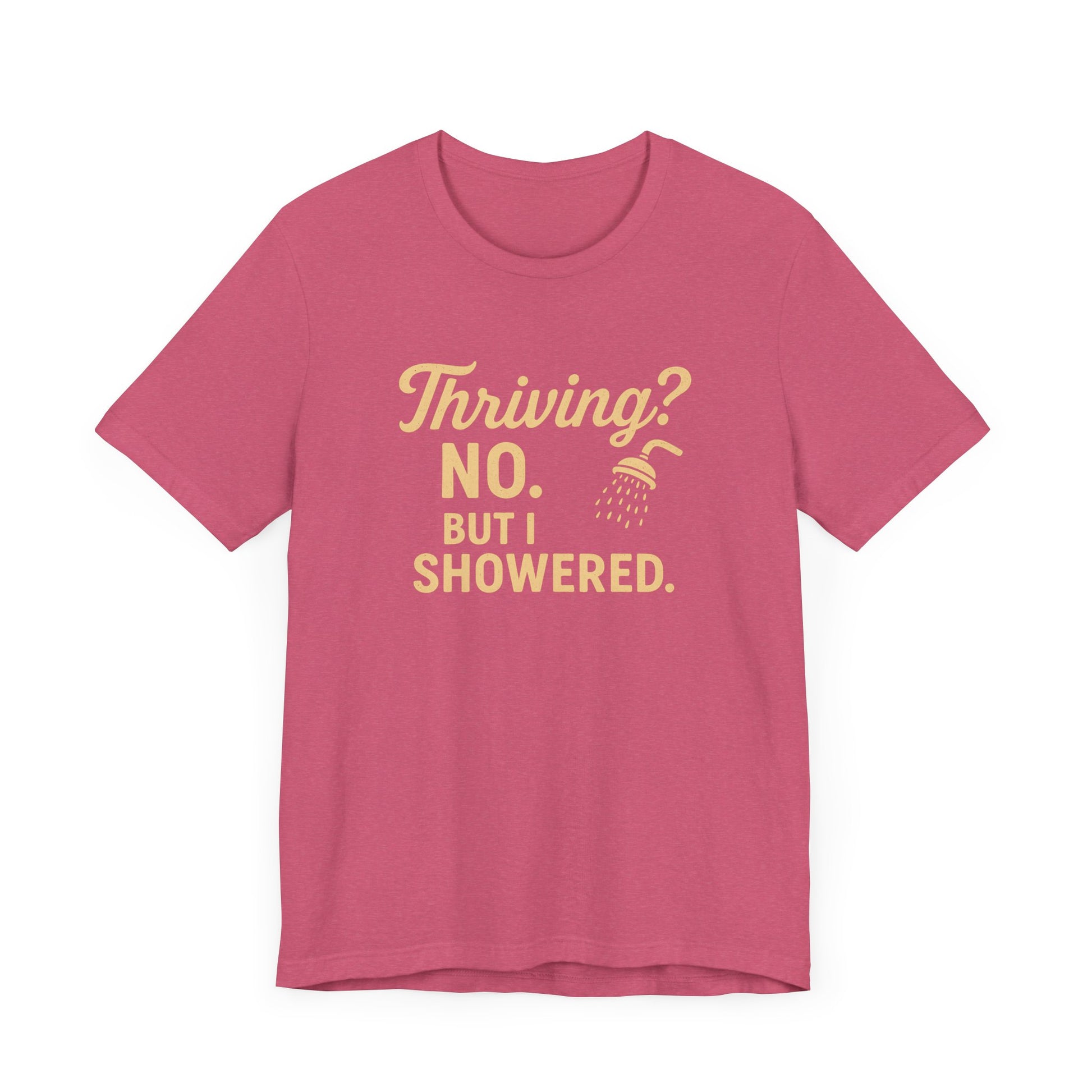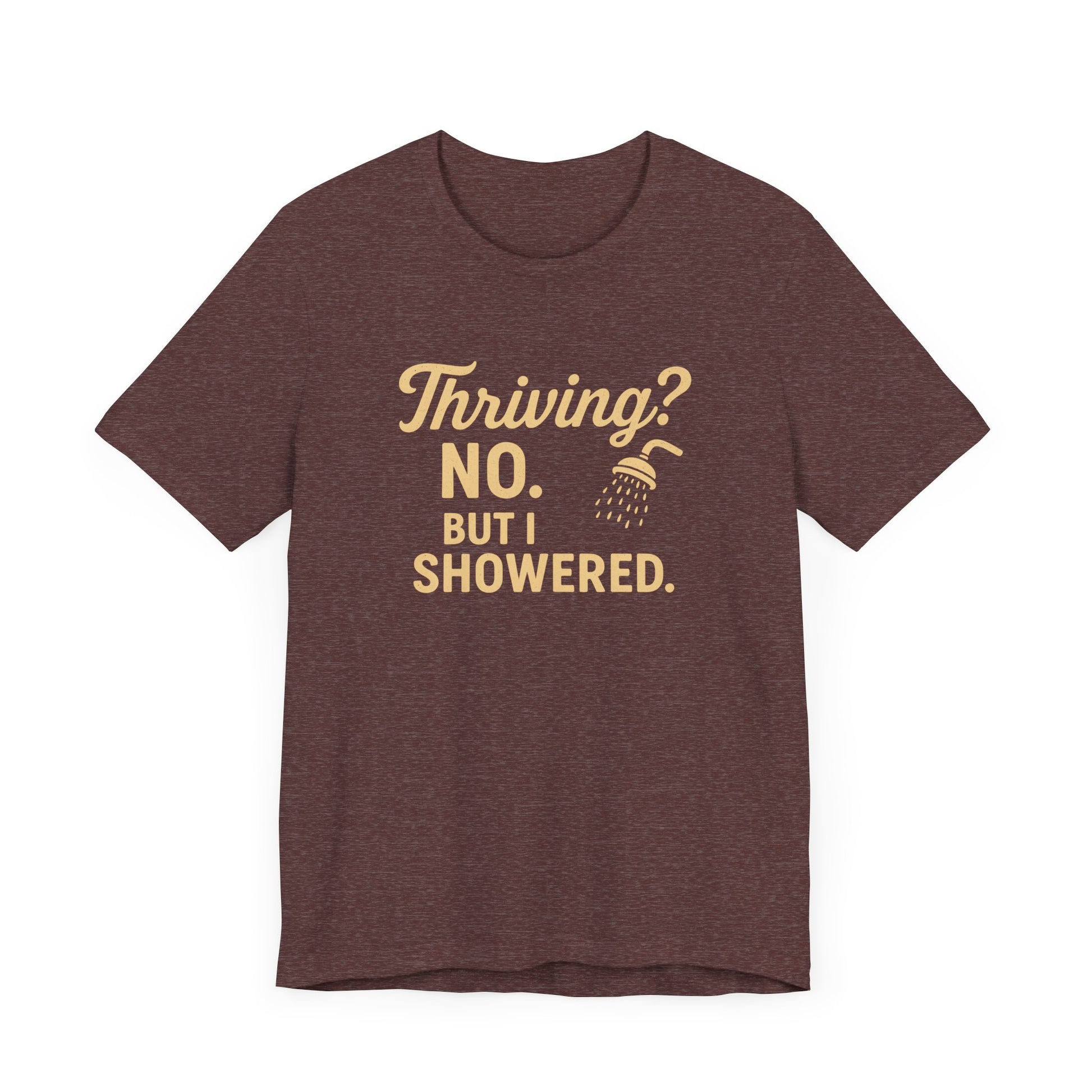 Thriving? No. But I Showered. T-Shirt – Funny Mental Health Humor for Women & Men