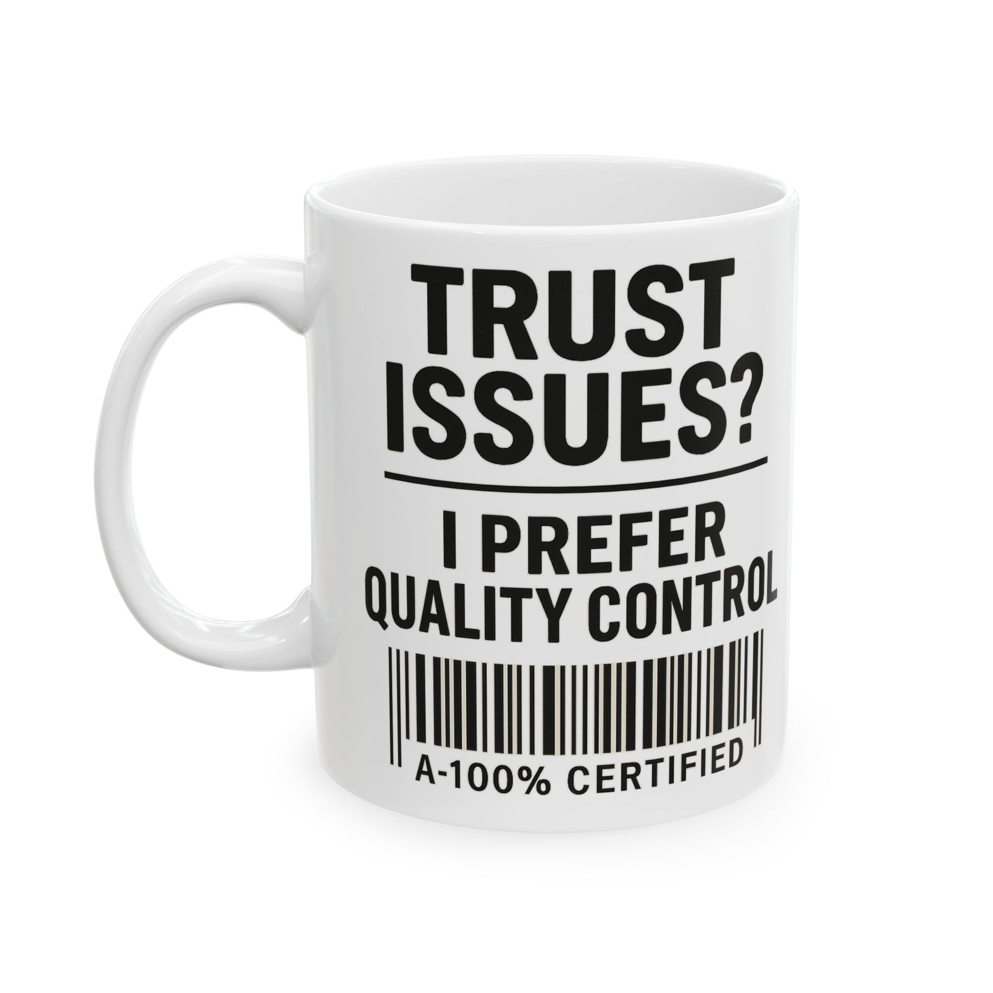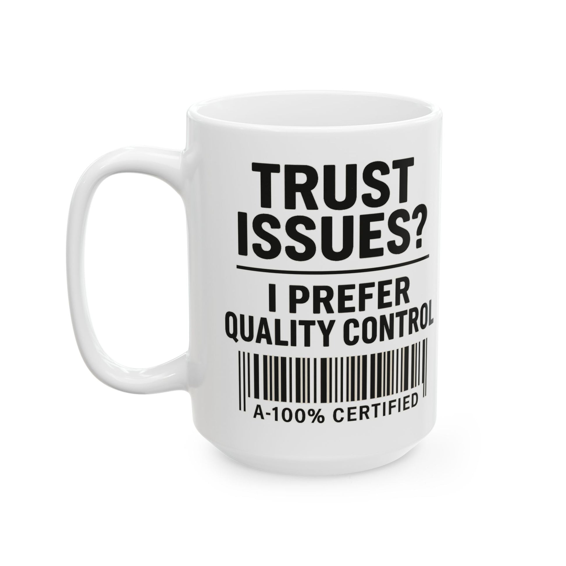 Trust Issues? I Prefer Quality Control Mug – Funny Coffee Cup for Overthinkers and Chaos Managers (11oz & 15oz)