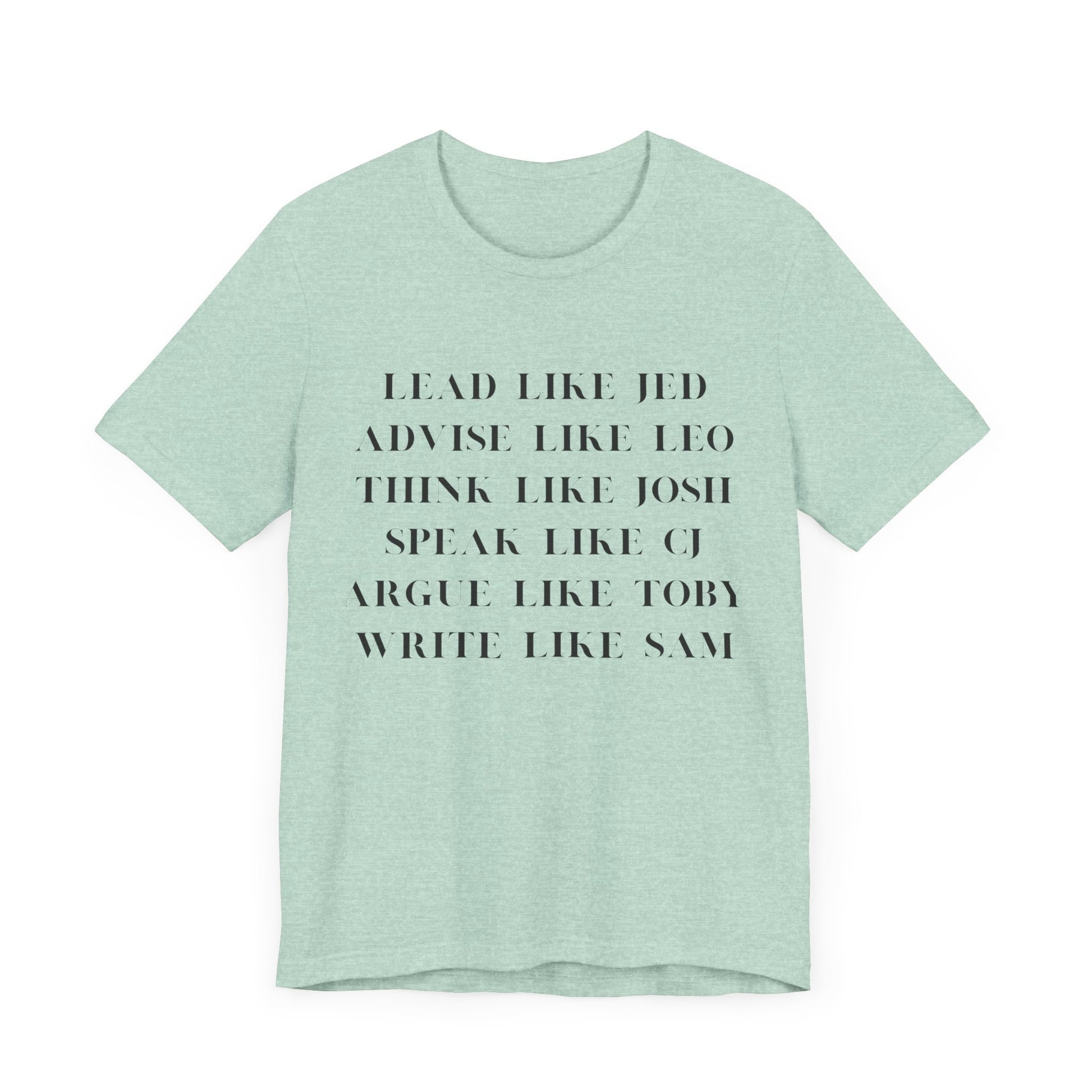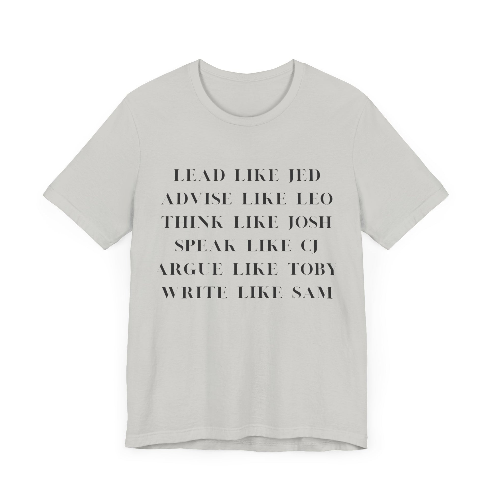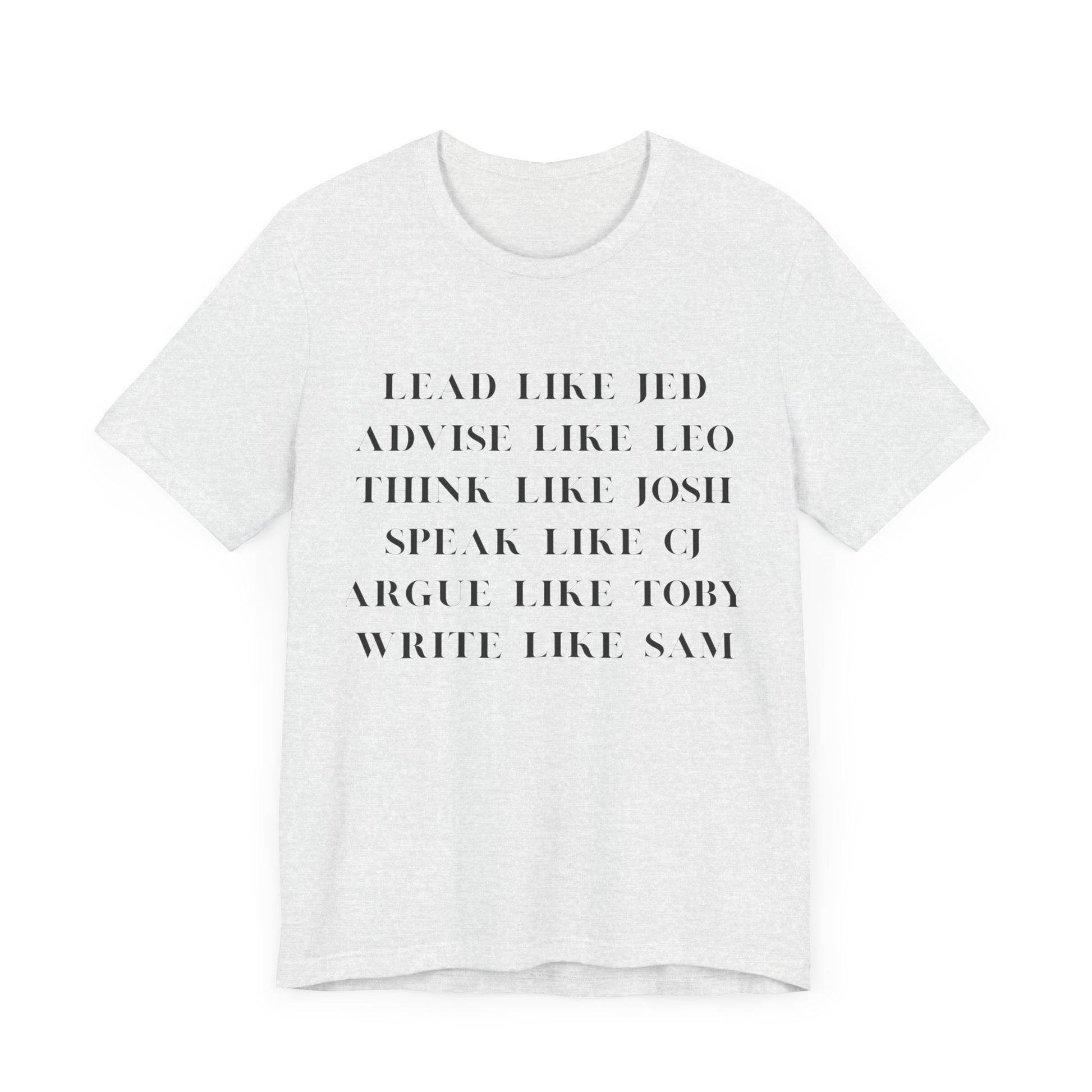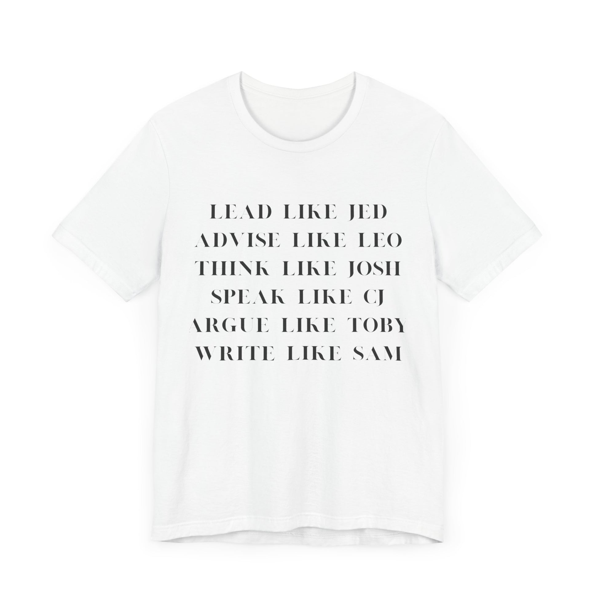 West Wing Quote T-Shirt – “Lead Like Jed” Front + “OK, What’s Next?” Back – Inspirational TV Fan Tee
