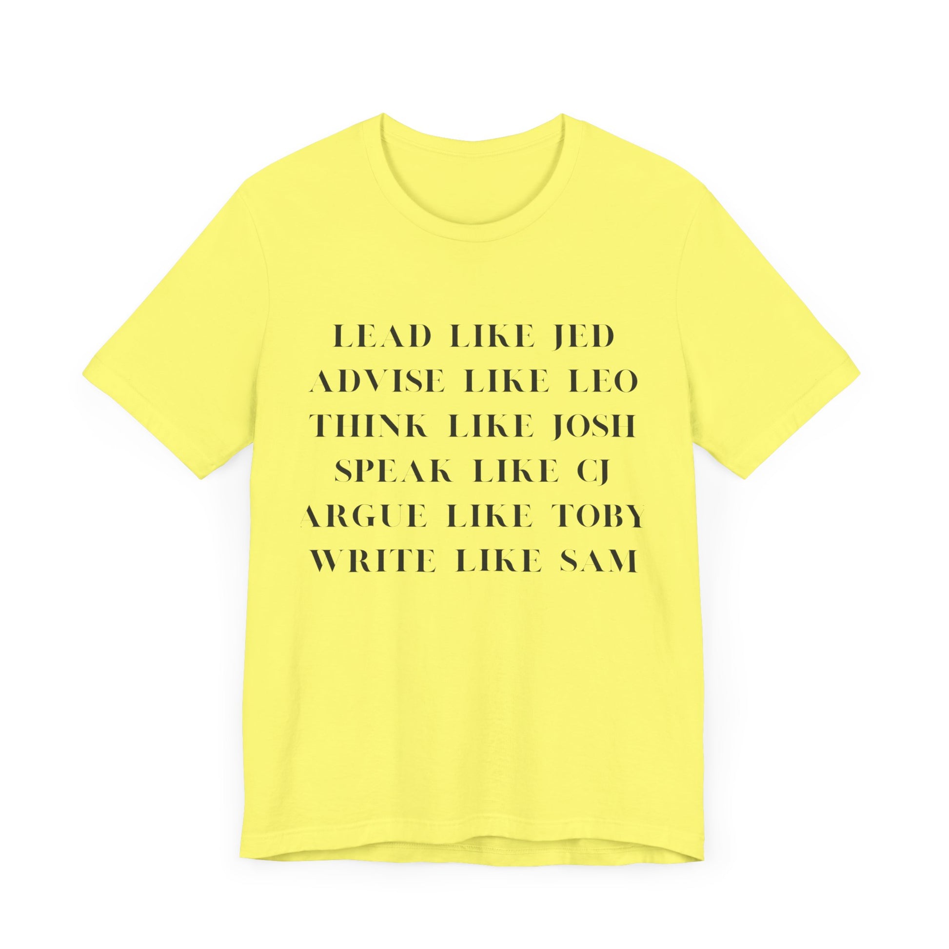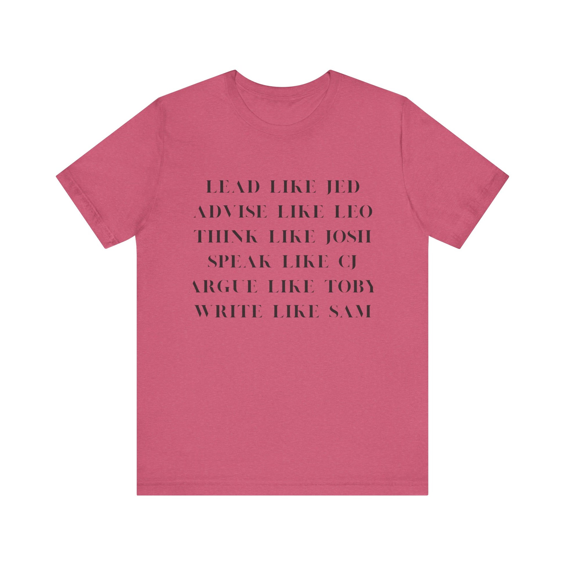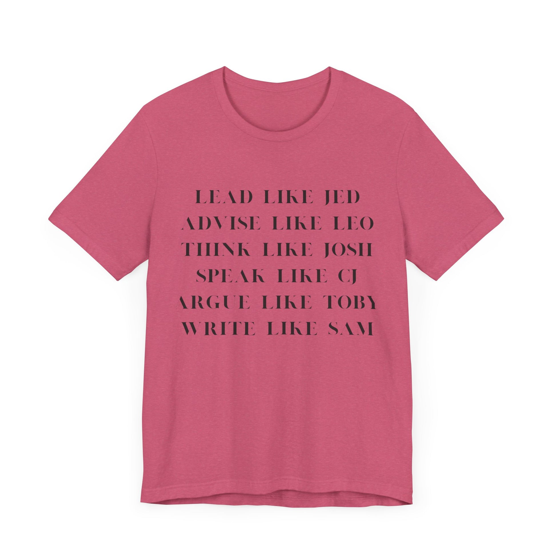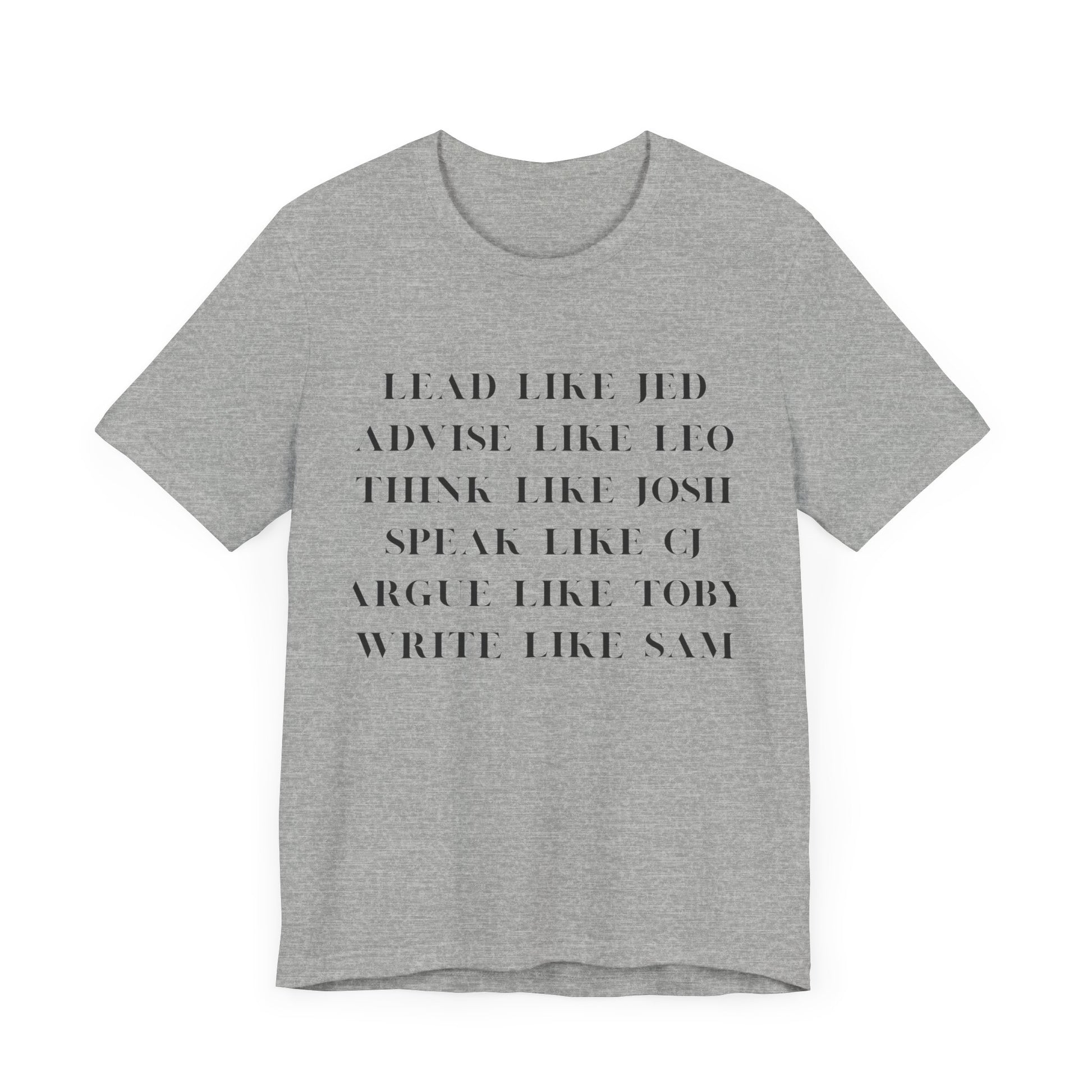 West Wing Quote T-Shirt – “Lead Like Jed” Front + “OK, What’s Next?” Back – Inspirational TV Fan Tee